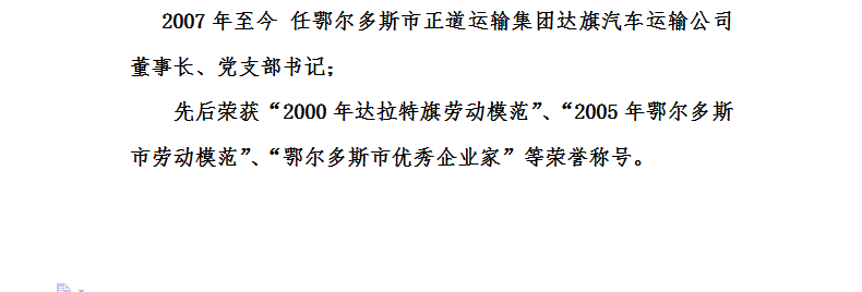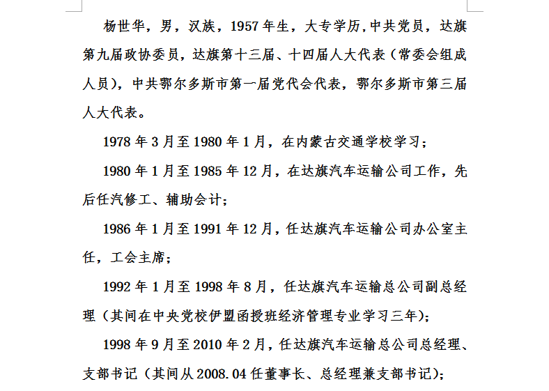 达拉特旗汽车运输总公司董事长、支部书记杨世华简历